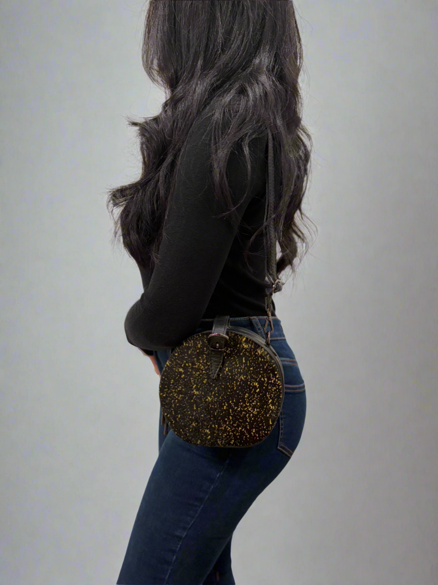 The bag’s perfectly circular silhouette exudes a sleek, modern aesthetic, while the organic texture of horsehair introduces a touch of rustic elegance. Designed for those with an eye for originality, The Terra Bag is the ultimate edgy accessory to complete any outfit.